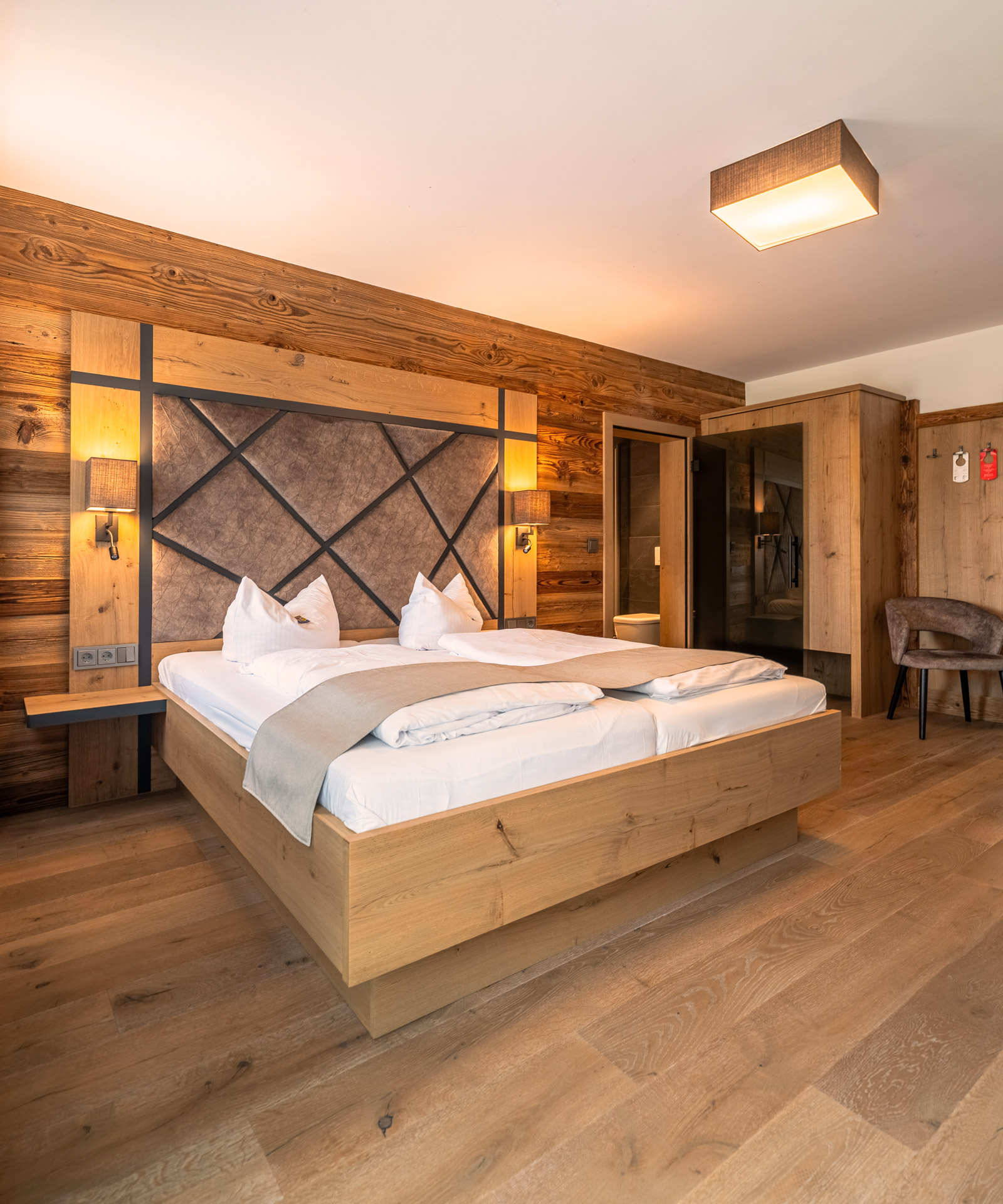 Wir wollen Ihren Aufenthalt bei uns so angenehm wie möglich gestalten. Dabei spielen unsere Zimmer und Suiten natürlich eine besondere Rolle. Das erlesene Interieur und die hochwertige Ausstattung unserer Zimmer, die allesamt im alpinen Stil gehalten sind, schaffen für Sie eine Atmosphäre zum Wohlfühlen. Sie sind hell, lichtdurchflutet und mit viel Holz und warmen Farben stilvoll eingerichtet und bieten Komfort.